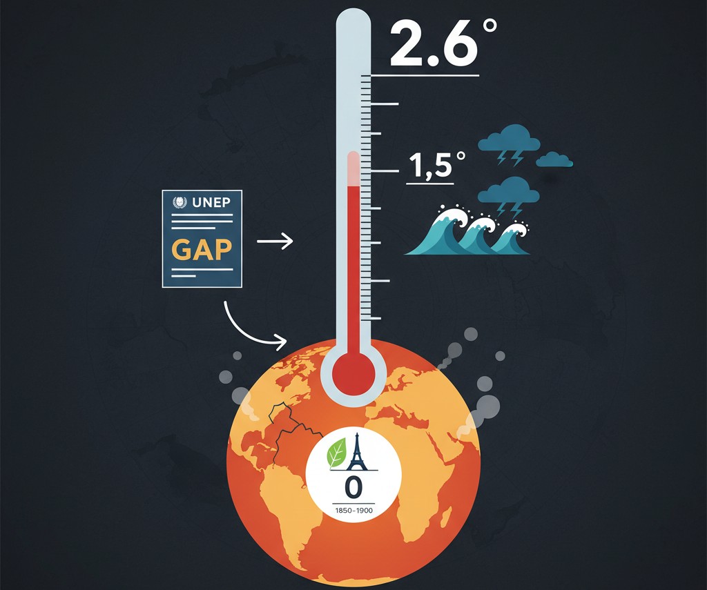 Một báo cáo mới nhất cho thấy thế giới vẫn đang đi chệch khỏi mục tiêu 1,5 độ C của Thỏa thuận Paris và đang trên đà nóng lên thêm 2,6 độ C so với mức tiền công nghiệp. Mức tiền công nghiệp dùng để chỉ mức nhiệt độ trung bình toàn cầu trong khoảng thời gian trước khi cuộc Cách mạng Công nghiệp bắt đầu, thường được các nhà khoa học xác định là giai đoạn 1850 đến 1900 và thường được coi là 0 độ C trên thang độ lệch nhiệt độ. Được phát hành bởi Chương trình Môi trường Liên Hợp Quốc, Báo cáo Khoảng cách Phát thải này một lần nữa khẳng định khoảng cách lớn giữa cam kết khí hậu hiện tại của các quốc gia và mức giảm phát thải cần thiết để tránh những tác động tồi tệ nhất của biến đổi khí hậu.